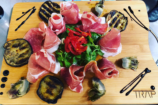 Sono stato ieri sera a cena con un mio amico in questo locale e devo dire che è stata veramente un'ottima scelta. Il menù è molto ricco e variegato, da antipasti sfiziosi a primi romani, pinse e panini, il tutto con una particolare attenzione per la qualità delle materie prime. Noi abbiamo preso due antipasti da dividere: una Millefoglie con il prosciutto crudo e le zucchine e un Tacos con falafel e guacamole, entrambi ottimi e soprattutto molto particolare l'abbinamento dei sapori che si allontana da quello tradizionale che puoi trovare in qualunque ristorante di quartiere. Io successivamente ho scelto una fantastica Carbonara (il piatto per cui di solito sono più critico, ma questa non aveva nulla da obbiettare) e il mio amico ha preso un filetto ai 3 pepi, che chiaramente ho chiesto subito di assaggiare e anche lì veramente un ottimo lavoro!! Per il vino invece abbiamo chiesto consiglio alla ragazza che stava in sala (che ci ha detto poi di essere la proprietaria) che è stata veramente gentile ed era molto preparata soprattutto in tema vinicolo, infatti ci ha consigliato un Bolgheri della Toscana che si abbinava perfettamente con quello che stavamo mangiando. Consiglio di prendere come chiusura la sbriciolata alla nutella, non è proprio un dolce per chi ha lo stomaco leggero ma è buonissima!!! Super esperienza da Trap, a partire dalla scelta del prodotto alla gestione del rapporto con cliente in sala e quindi 5 stelle meritate!!!