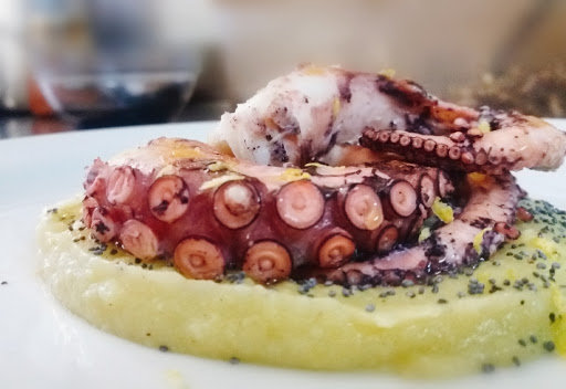 The restaurant is nestled in a building and doesn't have much charm, but as soon as you see the waiters passing by serving your food, everything magically changes! Simple but excellent cuisine, the pork ravioli are excellent, as is the roasted octopus. The staff are quick, friendly, and the prices are absolutely fair.