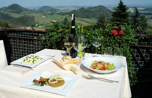 Al Pirio restaurant in the Euganean Hills, a spectacular view, very beautiful, always clean, great attention to detail, polite, friendly, and competent staff, quality food, with a wide selection of meat, fish, vegetarian, and vegan options. Ask for advice. Great chefs!