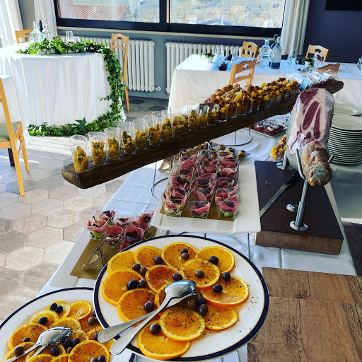 Located on the city wall of Moro d'Alba, this is a fairly large restaurant. The front glass building is cozy, with (or rather, without) views of the street, parking lot, and city wall. The back room isn't as cozy, but offers a fantastic view of the rolling hills.